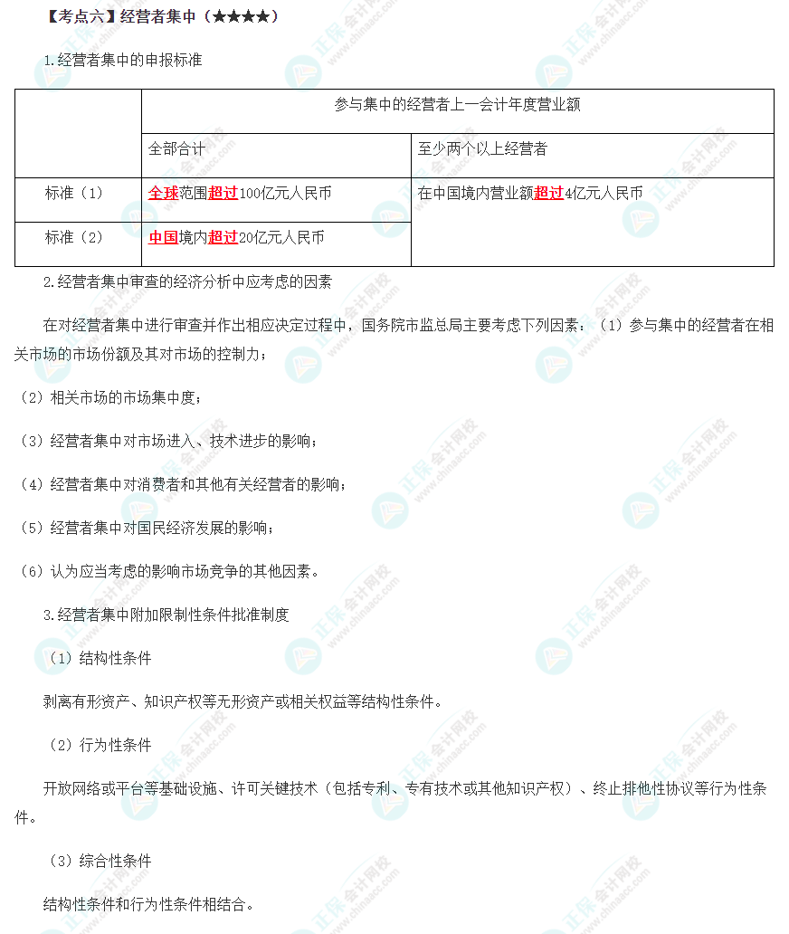 2022年注会《经济法》第十一章高频考点6:经营者集中