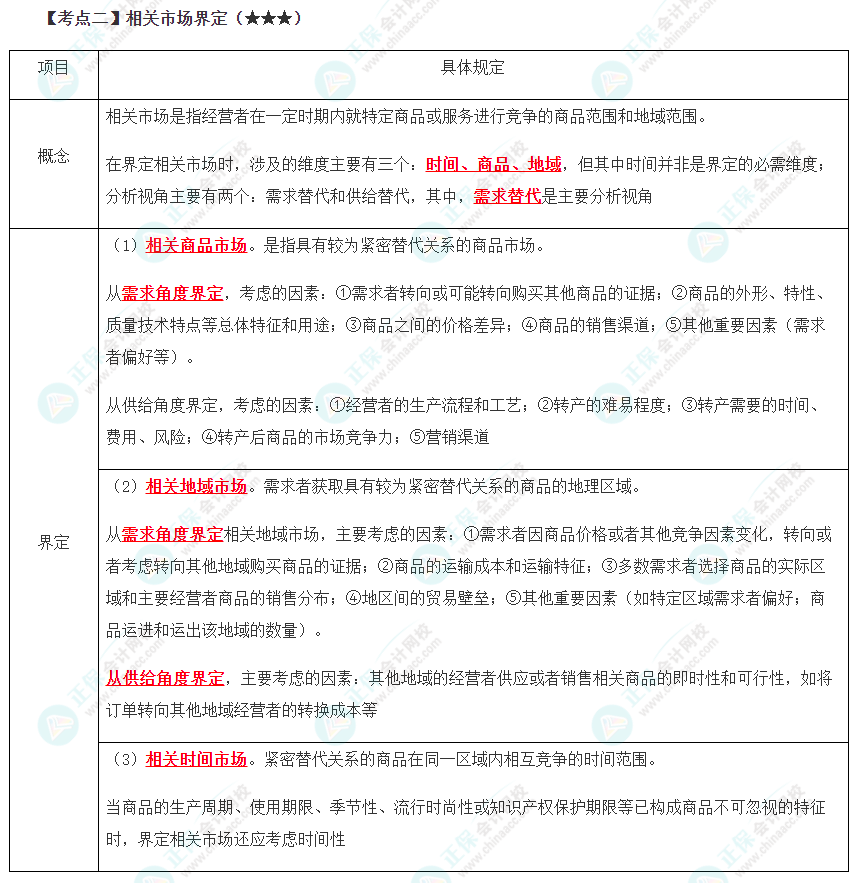 2022年注会《经济法》第十一章高频考点2:相关市场界定