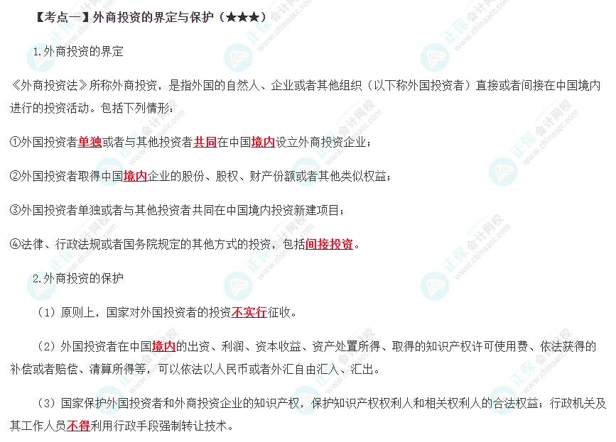 2022年注会《经济法》第十二章高频考点1:外商投资的界定与保护