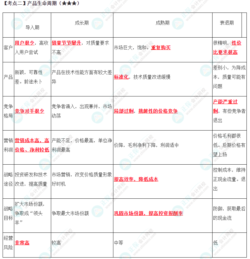 2022年注会《战略》第二章高频考点2:产品生命周期