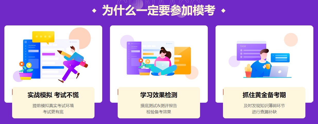 一模、二模、三模大赛结束后老师直播讲解试题。点击进入预约直播>。自由模考没有直播解析,交卷即可查看成绩及文字版解析,赛后针对单科成绩优秀学员更有神秘奖品哦!各位小伙伴快来参加吧!时间一直延续到考试前!提前熟悉机考与考场环境全靠它啦!
