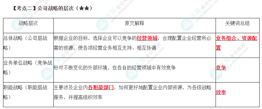 2022年注会《战略》第一章高频考点2:公司战略的层次
