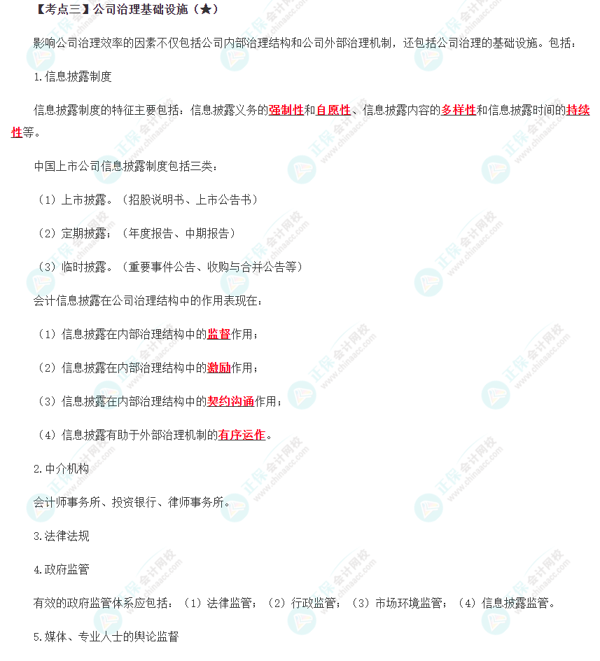 2022年注会《战略》第五章高频考点3:公司治理基础设施