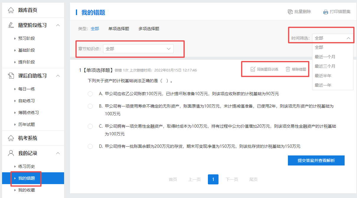 第三步:进入题库即可看到“我的错题”,这里记录了学习过程中的所有错题!