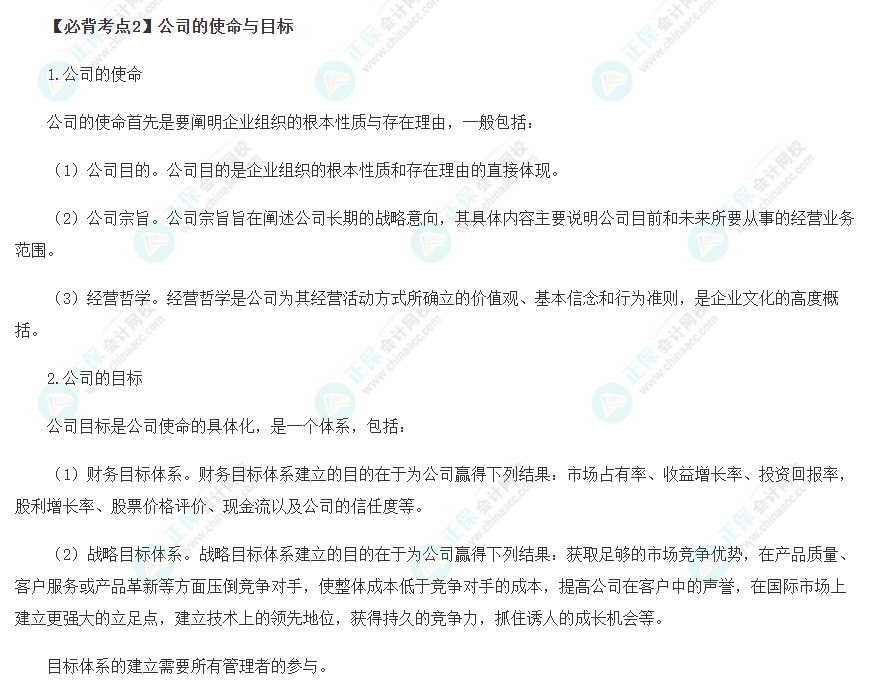 2022年注册会计师《战略》冲刺必背考点2:公司的使命与目标