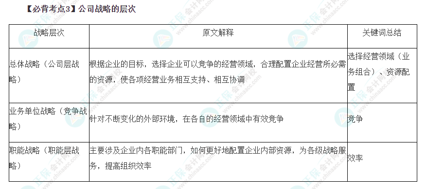 2022年注册会计师《战略》冲刺必背考点3:公司战略的层次