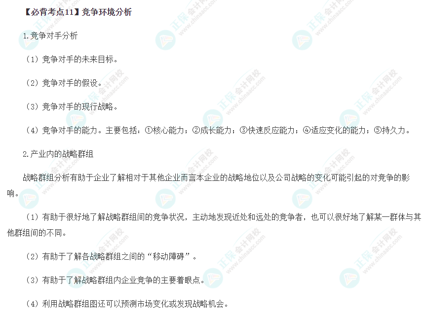 2022年注册会计师《战略》冲刺必背考点11:竞争环境分析