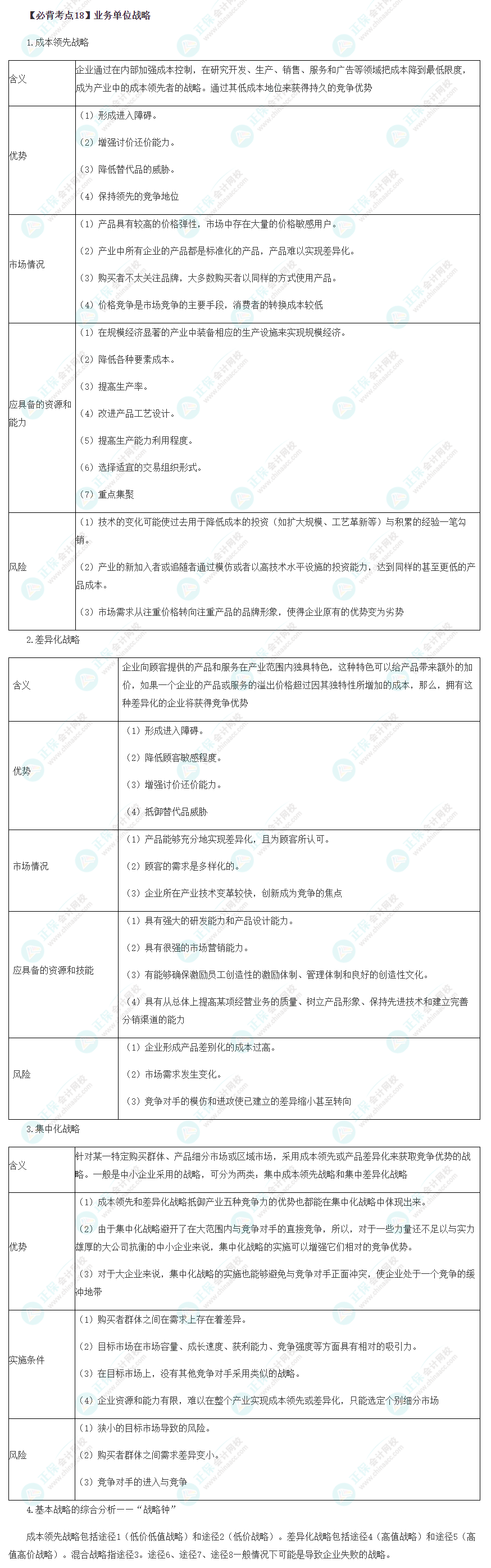 2022年注册会计师《战略》冲刺必背考点18:业务单位战略