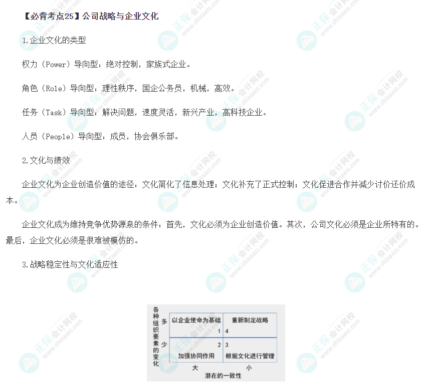 2022年注册会计师《战略》冲刺必背考点25:公司战略与企业文化