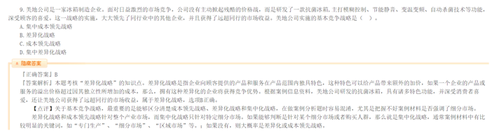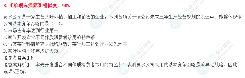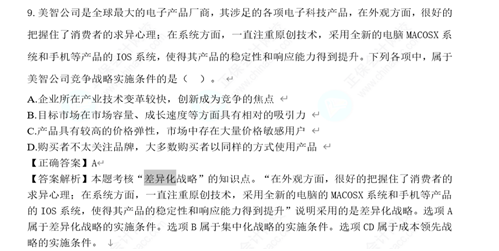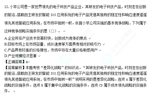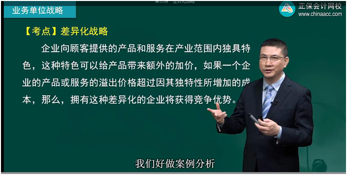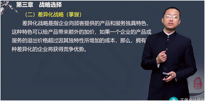 【点评】本题考核“差异化战略”的知识点。该题目所涉及知识点在下列正保会计网校(www.fawtography.com)2022年注册会计师考试辅导《公司战略与风险管理》中均有体现: