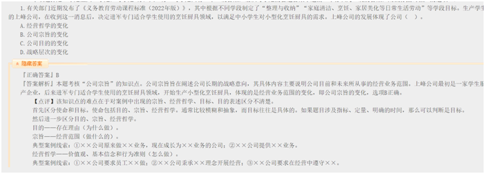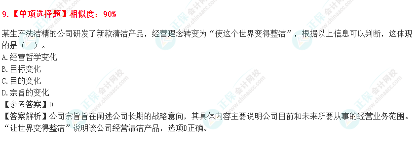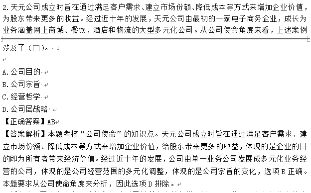 【点评】本题考核“公司的使命”的知识点。该题目所涉及知识点在下列正保会计网校(www.fawtography.com)2022年注册会计师考试辅导《公司战略与风险管理》中均有体现: