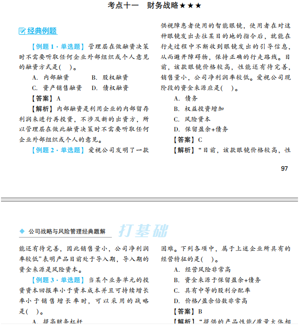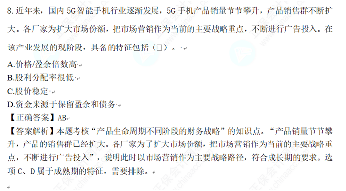 【点评】本题考核“财务战略”的知识点。该题目所涉及知识点在下列正保会计网校(www.fawtography.com)2022年注册会计师考试辅导《公司战略与风险管理》中均有体现: