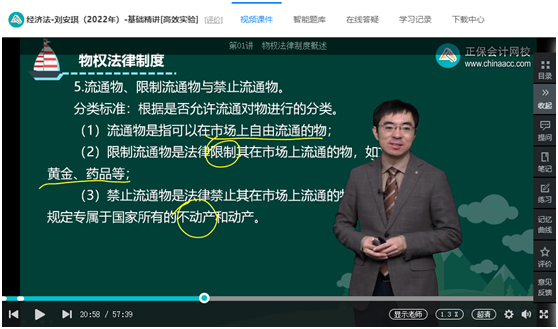 王妍荔老师【畅学旗舰班/高效实验班】基础精讲第3章第1讲;刘佳星老师【畅学旗舰班/超值精品班】基础精讲第3章第1讲;张稳老师【VIP签约特训班】逐章精讲第三章 物的种类、物权法律制度的基本原则、物权变动的原因(2022.1.28);刘安琪老师【畅学旗舰班/超值精品班】基础精讲第3章第1讲;【C位夺魁班】专题精讲第二章 诉讼时效、第三章 物权法律制度概述(2022.2.18);【豪华书课包】基础精讲第二章 代理制度、诉讼时效制度 第三章 物的概念与种类(2022.3.12);王妍荔老师主编《经济法应试指南》第52页,物的种类;第53页例题3;第78页第1题;刘佳星老师主编《经济法经典题解》第25页,物的种类;《经济法必刷550题》第19页第101题;王妍荔老师主编《经济法最后冲刺8套模拟试卷》临门模考试卷(二)单选题第3题。