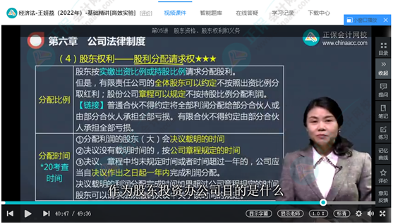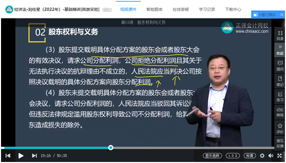 王妍荔老师【畅学旗舰班/高效实验班】基础精讲第6章第5讲;刘佳星老师【畅学旗舰班/超值精品班】基础精讲第6章第3讲;张稳老师【VIP签约特训班】逐章精讲第六章 股份公司组织机构、公司决议与担保制度、董监高制度、股东权利和义务(2022.4.11);刘安琪老师【畅学旗舰班/超值精品班】基础精讲第5章第3讲;【C位夺魁班】专题精讲第六章 股东违反出资义务的责任、股东权利与义务、公司权利能力的限制(2022.4.8);【豪华书课包】基础精讲第六章 股东权利与义务、董监高制度、公司的设立(2022.4.27);C位夺魁模拟试题(三)多选题第6题;畅学旗舰/高效实验摸底试题(一)多选题第6题;考前刷题集训班模拟试题(二)单选题第14题;面授班考前专属摸底卷(三)多选题第8题。王妍荔老师主编经济法《应试指南》第200页,股利分配请求权;第226页第4题;刘佳星老师主编经济法《经典题解》第86页例题14;做习题第59页第12题。