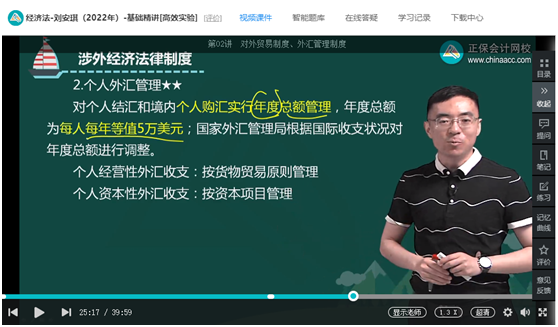 王妍荔老师【畅学旗舰班/高效实验班】基础精讲第12章第4讲;刘佳星老师【畅学旗舰班/超值精品班】基础精讲第12章第3讲;张稳老师【VIP签约特训班】逐章精讲第十二章 涉外经济法律制度(2022.6.23);刘安琪老师【畅学旗舰班/超值精品班】基础精讲第12章第2讲;【C位夺魁班】专题精讲第十一章 滥用行政权力排除、限制竞争规制制度、第十二章 涉外经济法律制度(2022.6.17);畅学旗舰/高效实验模拟试题(二)单选题第25题;畅学旗舰/超值精品模拟试题(二)单选题第25题;王妍荔老师主编《经济法应试指南》第483页,个人外汇管理制度;刘佳星老师主编《经济法经典题解》第216页例题8;《经济法必刷550题》第129页第531题;王妍荔老师主编《经济法最后冲刺8套模拟试卷》模拟试卷(一)单选题第25题。