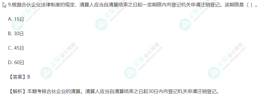 【点评】本题考核“合伙企业的清算”的知识点。该题目所涉及知识点在下列正保会计网校(www.fawtography.com)2022年注册会计师考试辅导《经济法》中均有体现:
