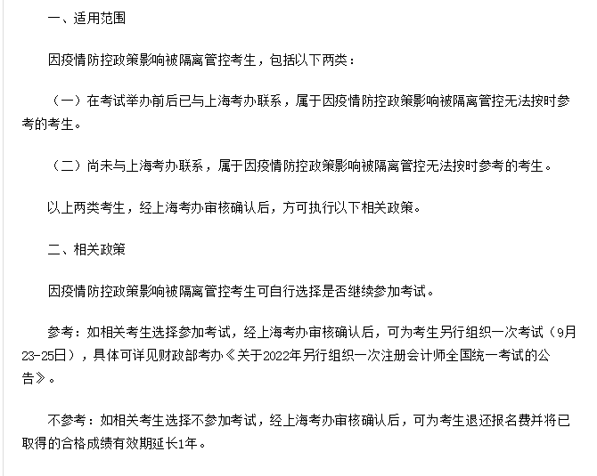 重要通知!2022年注会正式考试期间受疫情管控无法参加考试的考生注意啦,因疫情防控政策影响被隔离管控考生另行组织一次考试。快看都有哪些政策~