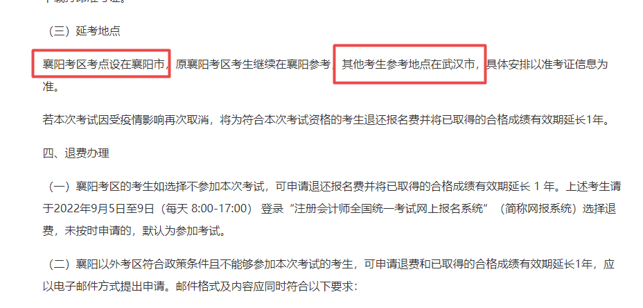 湖北:可自行选择是否继续参考,不能继续参考的可申请退费及将已取得的合格成绩有效期延长1年。襄阳考区考点设在襄阳市,原襄阳考区考生继续在襄阳参考,其他考生参考地点在武汉市,具体安排以准考证信息为准。