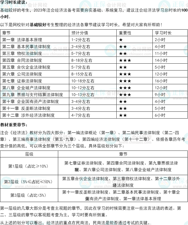 2023年注会的备考已经开始,预习阶段哪些章节比较重要呢?需要学习的时长是多久呢?正保会计网校老师为我们整理了2023注册会计师《经济法》各章节重要性及建议学习时长,希望能为你的备考助力!