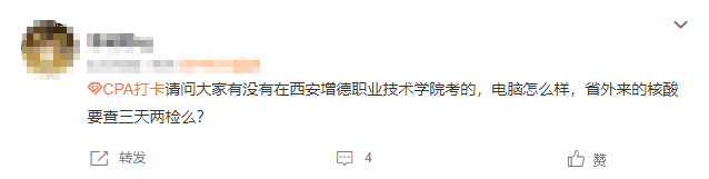 正小保收到不少西安考区的考生反馈,对考前防疫要求不是很确定,外地考生是否需要实行落地三天两检,省外的48小时内核酸是否可以?都需要携带什么?一起了解下~