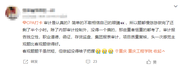 你觉得今年注会考试《审计》的难度如何呢?赶紧分享你的观点,和大家一起交流讨论吧!