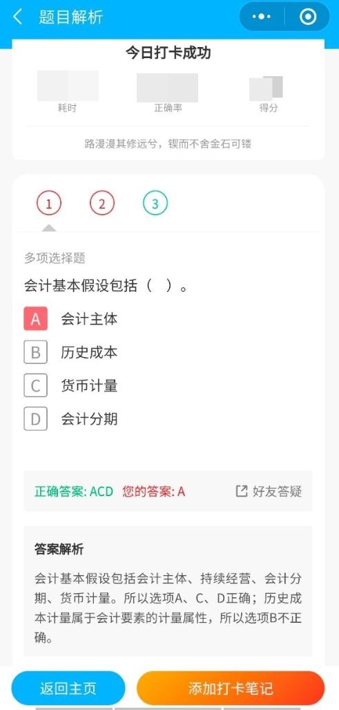 第三步:交卷后还可以查看答案解析,右下方也可以添加打卡笔记。