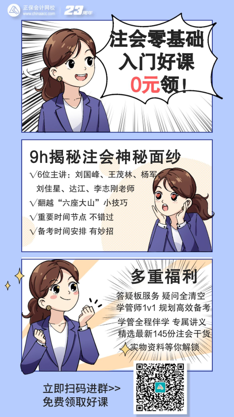2023年注会新考季,你的复习进度到哪里了?还无从下手?告诉你一个好消息!零基础“翻越”计划免费开学啦!6位精品师资,9小时扫盲学习,助你开启注会大门!别再犹豫,赶快扫下方图片二维码领取吧!