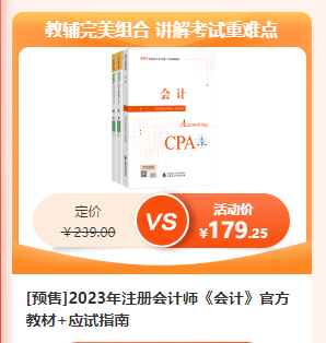 辅导书对于备考注会的小伙伴来说也格外重要,还没有购买辅导书的小伙伴们的福利来啦:购买官方教材+应试指南享钜惠:图片以会计科目为例
