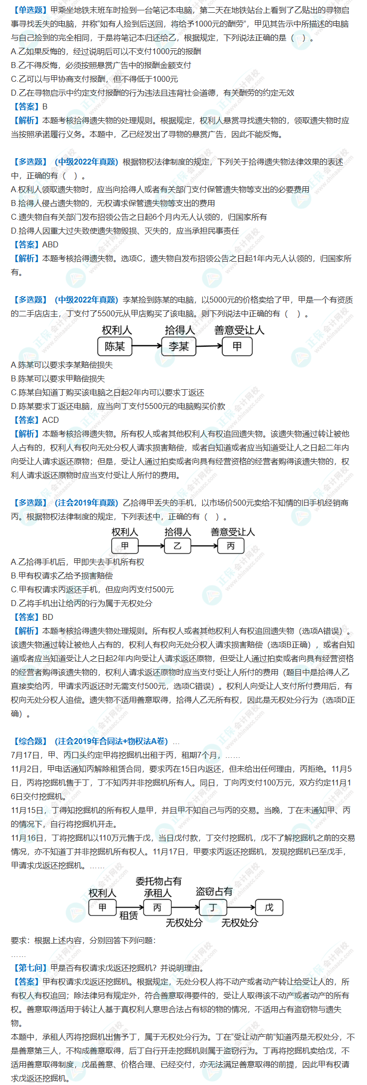 张稳老师注会经济法三星考点梳理!物权变动案例说(三)