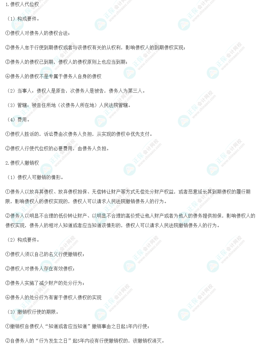 2023注会经济法核心入门知识点22:代位权与撤销权