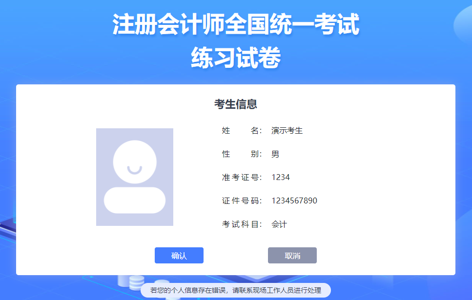 六、确认个人信息,没有问题点击“确认”,若个人信息有误,请及时联系现场工作人员处理。