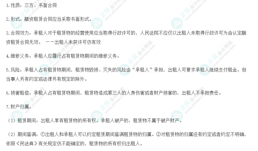 2023注会经济法核心入门知识点29:融资租赁合同