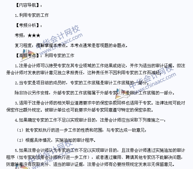 我们一起来学习2013注册会计师《审计》高频考点:利用专家的工作。本考点属于《审计》第十九章注册会计师利用他人的工作第二节利用专家的工作的内容。