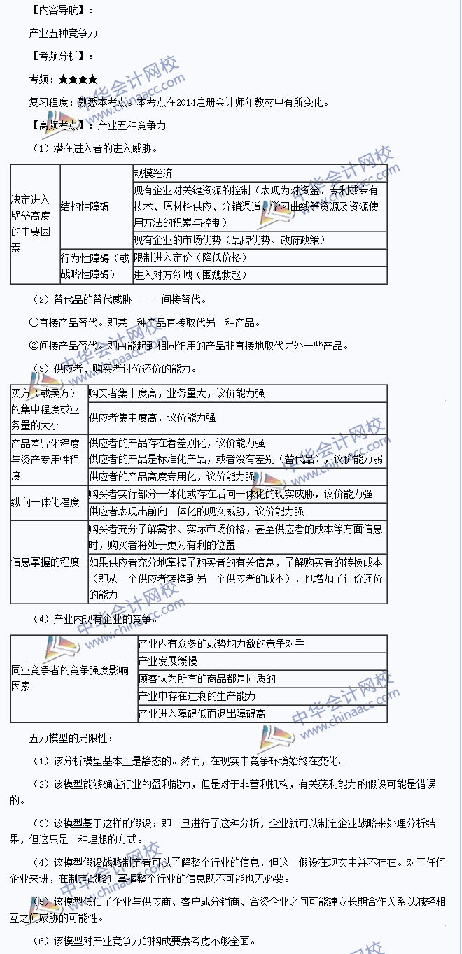 我们一起来学习2014注册会计师《公司战略与风险管理》高频考点:产业五种竞争力。本考点属于《公司战略与风险管理》第二章战略分析第一节企业外部环境分析的内容。