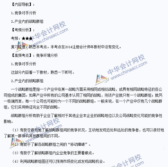 我们一起来学习2014注册会计师《公司战略与风险管理》高频考点:竞争环境分析。本考点属于《公司战略与风险管理》第二章战略分析第一节企业外部环境分析的内容。