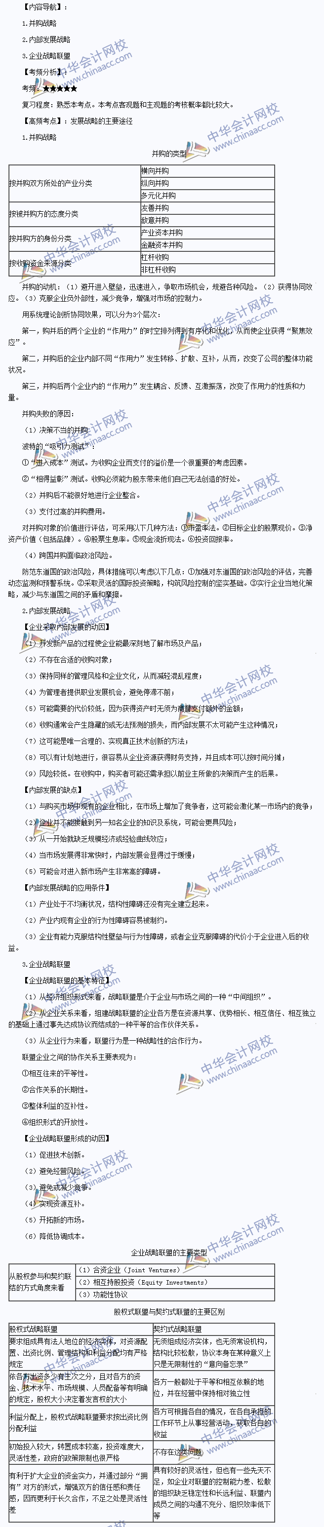 我们一起来学习2014注册会计师《公司战略与风险管理》高频考点:发展战略的主要途径。本考点属于《公司战略与风险管理》第三章战略选择第一节总体战略(公司层战略)的内容。