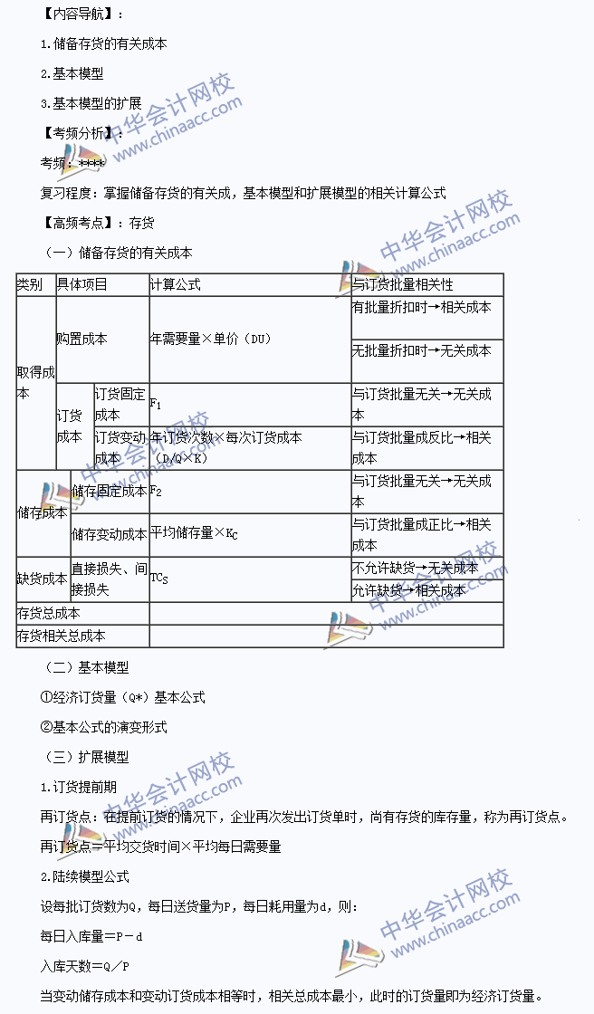 我们一起来学习2014《财务成本管理》高频考点:存货。本考点属于《财务成本管理》第十四章营运资本投资第四节存货的内容。