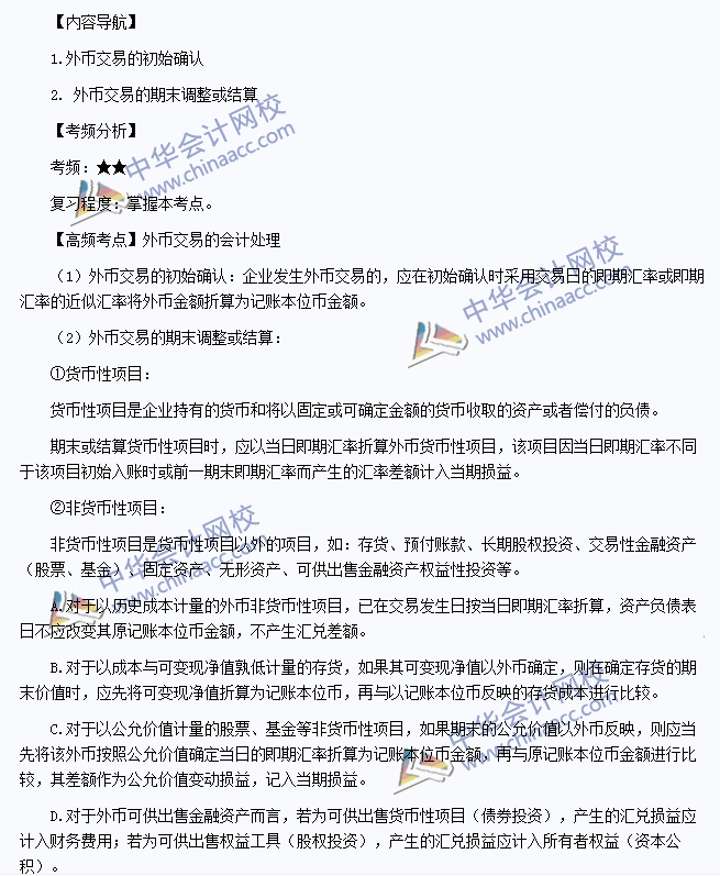 我们一起来学习2014注册会计师《会计》高频考点:外币交易的会计处理。本考点属于《会计》第二十章外币折算第二节外币交易的会计处理的内容。