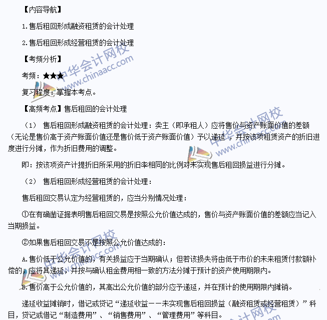 我们一起来学习2014注册会计师《会计》高频考点:售后租回的会计处理。本考点属于《会计》第二十一章租赁第四节售后租回交易的会计处理的内容。