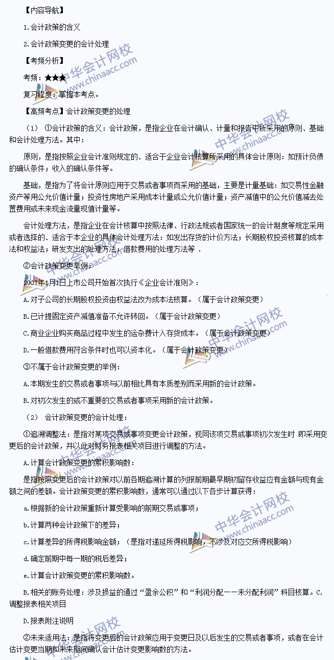 我们一起来学习2014注册会计师《会计》高频考点:会计政策变更的处理。本考点属于《会计》第二十二章会计政策、会计估计变更和差错更正第一节会计政策及其变更的内容。