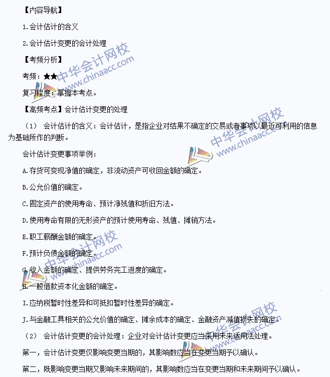我们一起来学习2014注册会计师《会计》高频考点:会计估计变更的处理。本考点属于《会计》第二十二章会计政策、会计估计变更和差错更正第二节会计估计及其变更的内容。