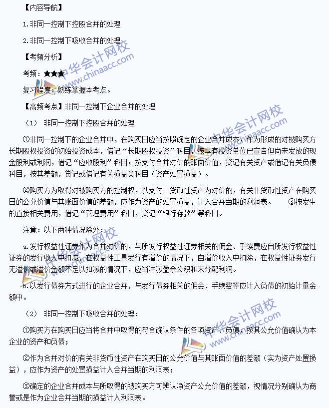 我们一起来学习2014注册会计师《会计》高频考点:非同一控制下企业合并的处理。本考点属于《会计》第二十四章企业合并第三节非同一控制下企业合并的处理的内容。