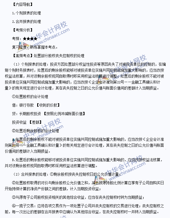 我们一起来学习2014注册会计师《会计》高频考点:处置部分股权丧失控制权的处理。本考点属于《会计》第二十四章企业合并第三节非同一控制下企业合并的处理的内容。