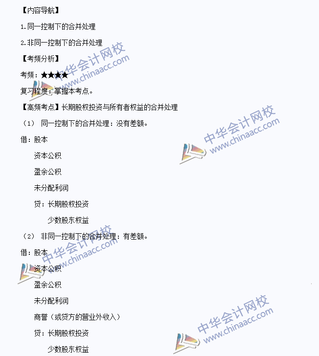 我们一起来学习2014注册会计师《会计》高频考点:长期股权投资与所有者权益的合并处理。本考点属于《会计》第二十五章合并财务报表第四节长期股权投资与所有者权益的合并处理(同一控制下)和第五节长期股权投资与所有者权益的合并处理(非同一控制下)的内容。