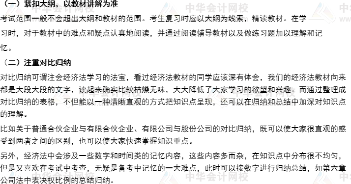 那种认为经济法在考前突击一下、冲刺一下就可以通过的想法是行不通的,特别是法律基础知识比较薄弱的考生。多年来的事实证明,这样的学习方式对于注册会计师这类的社会考试来说无疑风险巨