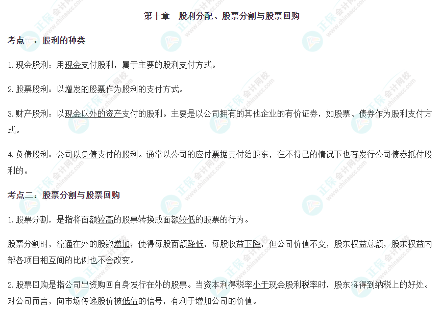 【注会财管默写本——第十章 股利分配、股票分割与股票回购】