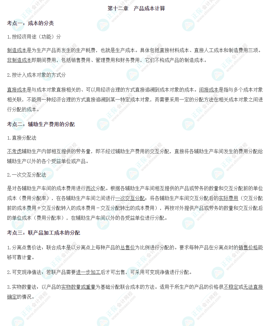 【注会财管默写本——第十二章 产品成本计算】
