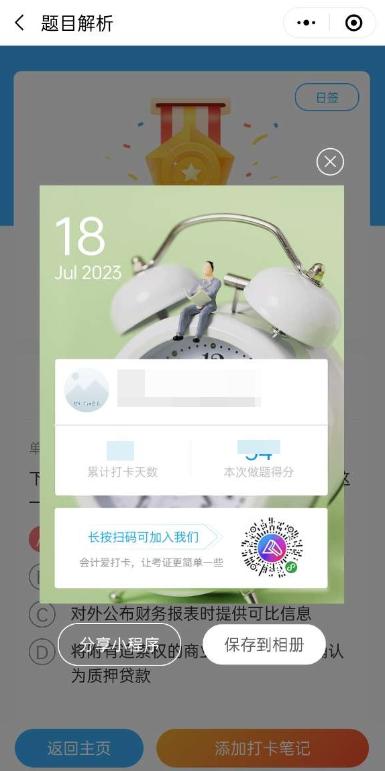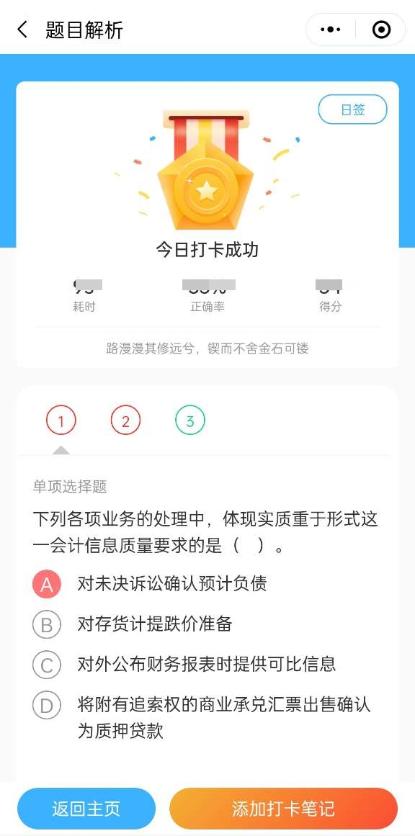 第四步:交卷后还可以查看答案解析,右下方也可以添加打卡笔记