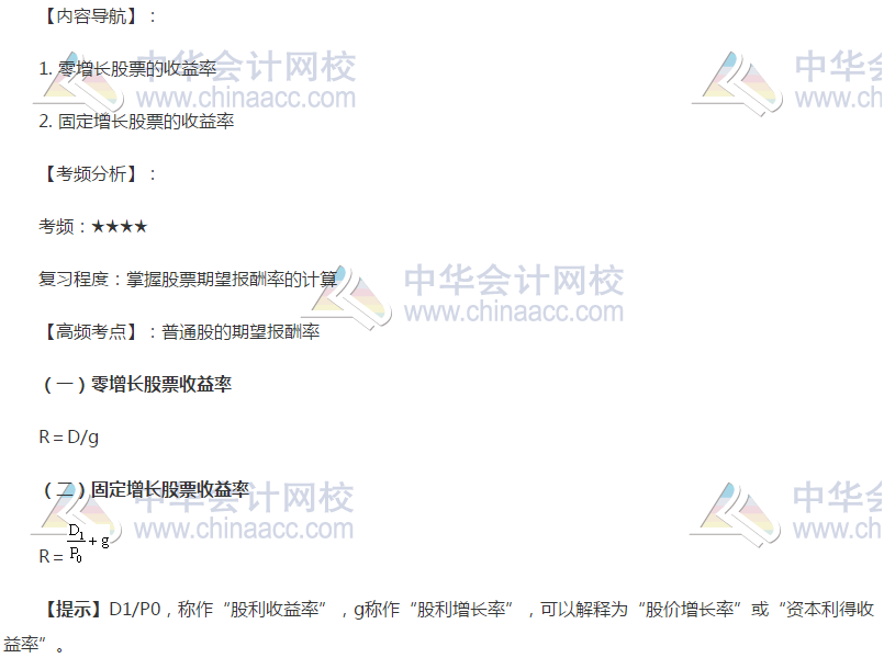 备考时间紧张,抓紧时间抓住重点备考注册会计师吧!正保会计网校教学老师为广大考生整理了高频考点,跟上老师的节奏,一起来学习2019《财务成本管理》高频考点:普通股的期望报酬率。本考点属于《财务成本管理》第六章债券、股票价值评估第二节普通股价值评估的内容。