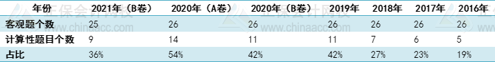 (1)2021年客观题中,计算性的题目数量较前两个年度有所下降: